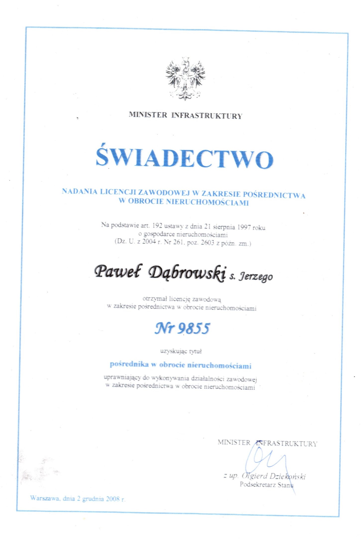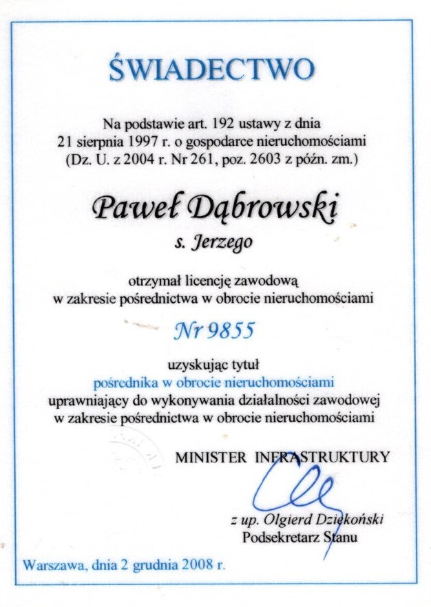 Paweł Dąbrowski (Nr licencji: 9855) Dąbrowski Nieruchomości Komercyjne