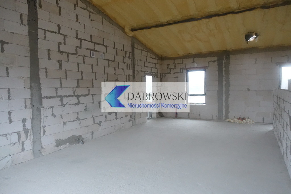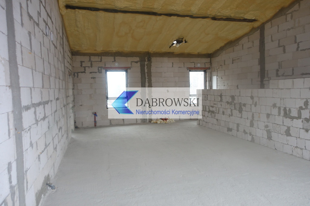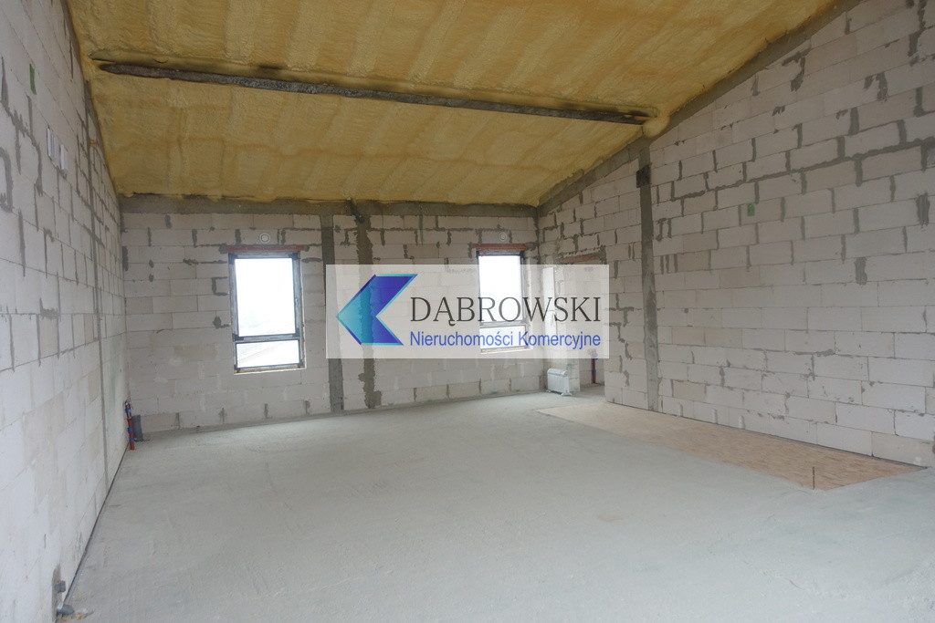 Tynki gipsowe tylko na ścianach murowanych/żelbetowych, nakładane mechanicznie do wysokości ok. 3m, wstępnie malowane na biało; pomieszczenia WC na ścianach murowanych/żelbetowych tynki gipsowe zacierane na ostro bez malowania; ściany działowe G-K jednokrotnie malowane; sufity na parterze nie tynkowane i nie malowane - bez sufitów podwieszanych; sufity na piętrze wg. wyboru Najemcy albo sufity podwieszane albo otwarta przestrzeń do konstrukcji dachu; wymagane wykonanie izolacji pod płytkowej przez Najemcę. Na podłodze posadzka cementowa.