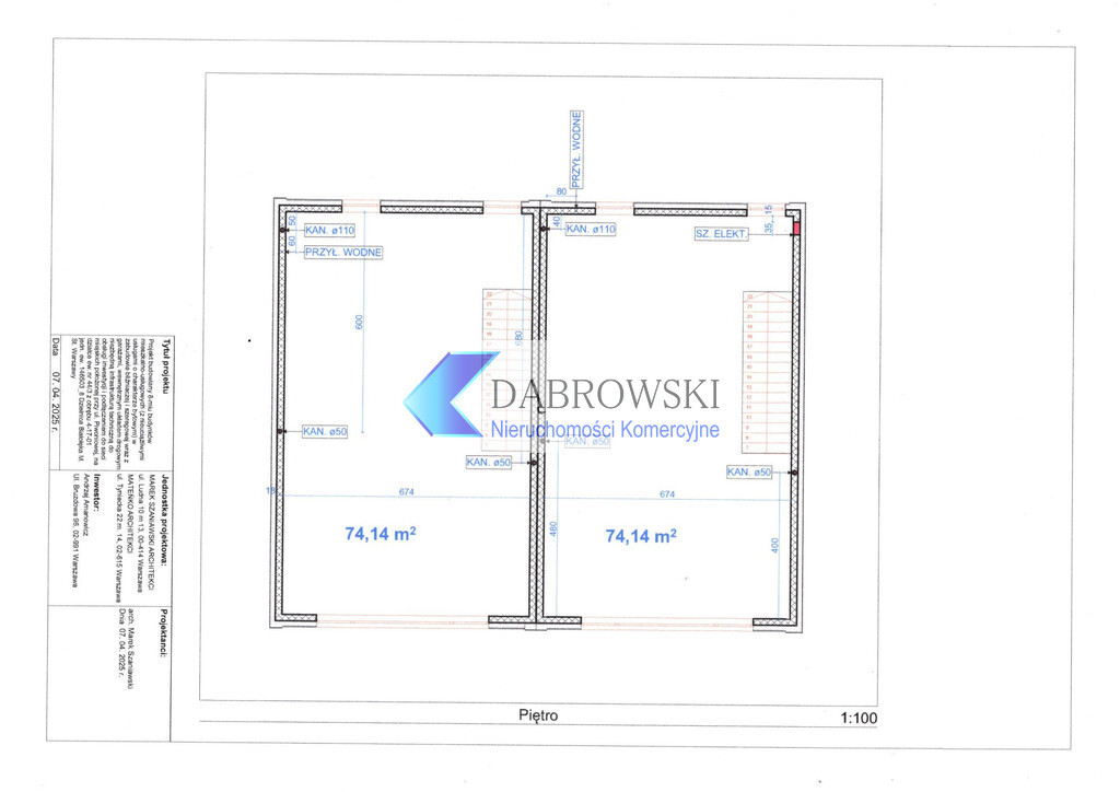 The buildings are in a raw state, the investment was accepted for use by a legally binding decision of PiNB. The buildings are intentionally not fully finished in order to adapt them to the individual needs of the tenant or tenants. Matters related to finishing for individual talks. The preferred option is a long, e.g. 6-month rental holiday, i.e. exemption from paying rent and/or discount rent in the first months of the lease, but finishing at the tenant"s expense. As the landlord built these buildings, he can offer the tenant his finishing company. In the event that the landlord were to carry out some of the work at his own expense, bringing the rented space to a developer"s condition, then the rental holiday would be shorter. In both buildings there are only partition walls, which can be removed if necessary. The stairs leading to the first floor are 135 m2 wide. On the ground floor there are large display windows equipped with lockable roller shutters, and on the first floor there are large windows both at the front and back and small windows on the roof. Tilt and open windows. The smaller building has 2 entrances at the front + 2 entrances at the back and a separate entrance to the communication (stairs) leading to the first floor. The larger building has 3 entrances at the front + 3 at the back to the ground floor + a separate entrance to the first floor. Anti-burglary external doors Clades C, made of aluminum profiles, glazed. Height: 3.5 m2 (ground floor); 3 m2 (first floor to the concrete floor); The entire area is equipped with several cameras + monitoring; well-kept, i.e. roads and sidewalks made of concrete slabs and greenery, i.e. planting trees and shrubs and lawns. The facility is prepared for protection and monitoring. The entire facility/area is lit and equipped with small architectural elements, e.g. garbage cans. The buildings were built so that, if necessary, any number of independent ventilation systems can be installed and elevators can be built to the first floor (if necessary by the tenant/tenants).