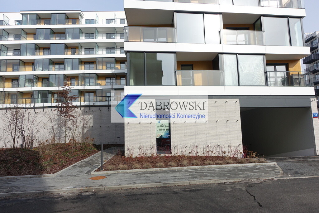 Do wynajęcia lokal użytkowy o przeznaczeniu usługowym, handlowym lub małej gastronomii np. sushi, położonym na parterze b. ładnego nowego budynku mieszkalnego przy ul. Nowaka-Jeziorańckiego 17, z dwiema niewielkimi witrynami tj. lokal narożny. Lokal usytuowany z tyłu budynku przy wejściu na klatkę schodową (wejście od strony chodnika), gdzie jedno okno witrynowe wychodzi na ul. Mikołajczyka (tj. strona południowa) vis a vis starszego osiedla. Drugie okno witrynowe wychodzi z boku na stronę zachodnią i z tej strony jest wejście do lokalu. Lokalizacja mieszana, kompleks nowych budynków położonych pomiędzy ulicami Nowaka-Jeziorańskiego a Mikołajczyka i nieco starsze osiedle po drugiej stronie ul. Mikołajczyka. Umiarkowany ruch pieszy. Parkowanie wzdłuż ulicy Mikołajczyka (są to ogólnodostępne miejsca). Blisko przystanki autobusowe, aż 7 linii autobusowych.
