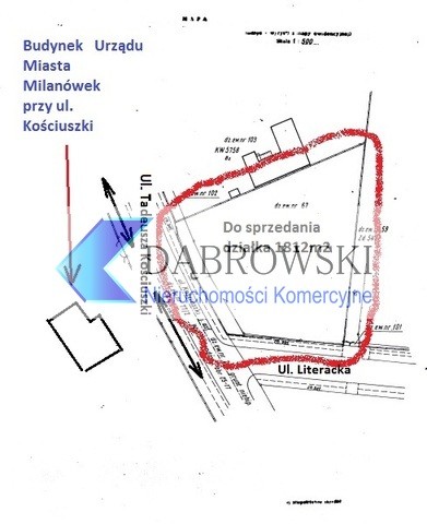 Do sprzedania działka naprzeciwko Urzędu Miasta Milanówek tuż przy ulicy Tadeusza Kościuszki i Literackiej. W drodze wszystkie media. Bardzo korzystne usytuowanie - ulica Kościuszki jest główną drogą łączącą Milanówek i autostradę A2, Relatywnie duże natężenie ruchu. Działka znajduje się tuż przy ścisłym centrum miasta. W najbliższej okolicy charakterystyczna dla Milanówka willowa zabudowa, starodrzew, a także sklepy, parki, przychodnia, posterunek policji, szkoły, skwery, kościół. Do stacji kolejowej dojdziemy w niecałe 10 minut.